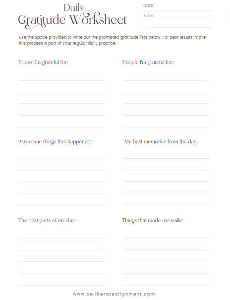 Daily Gratitude Worksheet